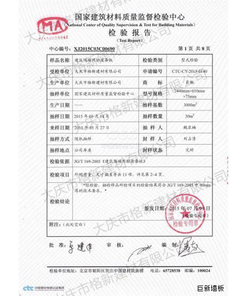 大慶市格新建材有限公司是家以節能墻體、墻材研發、生產制造、技術應用推廣、銷售和安裝的技術企業。公司位于大慶市龍鳳光明工業園區,總投資1.2億元,一期投資5000萬元,工廠占地面積20000平方米,年產復合實芯分室墻板JSFP-90型、分戶墻板JSFP-120型、分戶墻板JSFP-150型、分戶墻板JSFP-200型、保溫墻板WQBPS-150型、保溫墻板WQBPS-200型約200萬平方米。